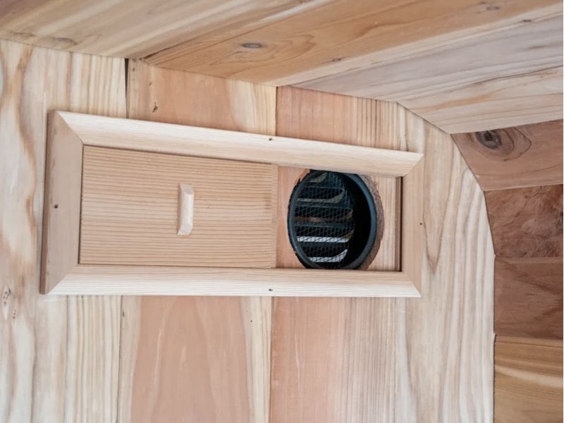Proper airflow ensures even heat, fresh oxygen, and a more comfortable, breathable sauna experience without stuffiness or stale air.