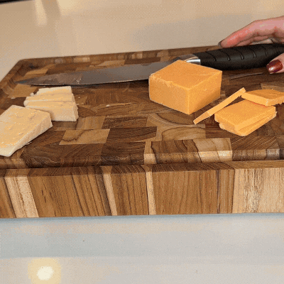 Our teak butcher block cutting board is the perfect blend of durability and elegance, designed to handle everything from daily meal prep to gourmet creations. Naturally resistant to moisture and knife-friendly, its rich wood grain adds warmth to any kitchen while providing a sturdy, reliable surface for slicing, chopping, and serving.